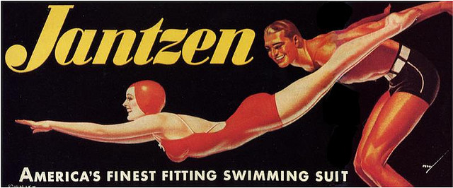 The company that became Jantzen didn’t start out to make bathing suits. John A. Zehntbauer and Carl C. Jantzen founded it in 1910 as the Portland Knitting Co., a business that made sweaters and woolen hosiery. The enterprise sidestroked into the swimwear business when members of the Portland Rowing Club asked it to produce a wool rib-knit rowing suit about 1913. In 1918 its name was changed to the Jantzen Knitting Mills.